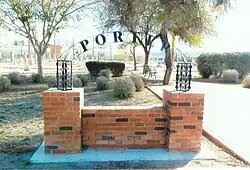 In 1884, the city counsel decided to purchase Block 32 in what archaeologists have now determined were the ruins of a pre-Columbian Hohokam community which they named "La Villa".[4] The families who had their loved ones buried in the old cemetery, had them moved to the new one. The city also reburied the unclaimed bodies in a common grave in the new cemetery.[2][3] On October 8, 1884, John R. Loosley became the owner of some of the western portion of "Block 32". He moved bodies from the potters field of the old cemetery and buried them in what became known as the "City" or "Loosley" cemetery. In 1888, Lulu G. Porter, wife of DeForest Porter, acquired the south half of Block 32 and had it laid out as a cemetery, which is now known as Porter cemetery.[5]