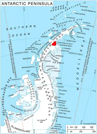 Pip Cliffs (65°43′S 63°1′W / 65.717°S 63.017°W) is a prominent rock cliffs, rising to about 1,250 m in southwestern Aristotle Mountains, 10 km west of Mount Fedallah and 3.5 km east of Peychinov Crag, on the north side of Flask Glacier on Oscar II Coast, Graham Land. In association with names from Melville's Moby Dick grouped in this area, named by United Kingdom Antarctic Place-Names Committee (UK-APC) in 1987 after Pip, the cabin boy of the Pequod.