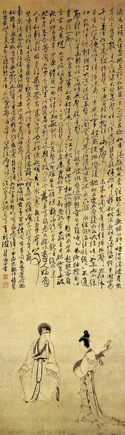 "Pipa xing" (Chinese: 琵琶行), variously translated as "Song of the Pipa" or "Ballad of the Lute", is a Tang dynasty poem composed in 816 by the Chinese poet Bai Juyi,[1] one of the greatest poets in Chinese history.[2][3] The poem contains a description of a pipa performance during a chance encounter with a performer near the Yangtze River.[4]