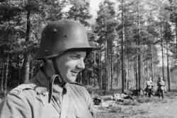 Petelius in 1984, during the principal cinematography of the film The Unknown Soldier in Niinisalo.