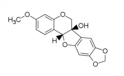 Pisatin (3-hydroxy-7-methoxy-4′,5′-methylenedioxy-chromanocoumarane) is the major phytoalexin made by the pea plant Pisum sativum.[1] It was the first phytoalexin to be purified[2] and chemically identified.[3] The molecular formula is C17H14O6.