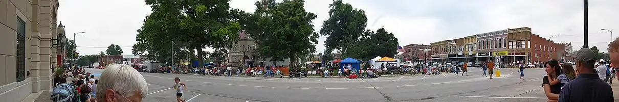 Pittsfield Historic District is a historic district in Pittsfield, Illinois, the county seat of Pike County. The district is centered on the Pike County Courthouse and the surrounding courthouse square; it also encompasses nearby residential areas. The courthouse was built in 1894–95; architect Henry Elliott based its Romanesque design off his earlier design for the Edgar County, Illinois, courthouse. The district's historic commercial buildings are mostly located on the courthouse square, which surrounds the courthouse; these buildings are mainly two-story brick structures. The Italianate and Queen Anne styles are prevalent among the district's houses, with the former being the most prominent; the Greek Revival and Federal styles are also common in the district's earlier homes.[2]