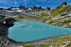 There are five mountain lakes (Pizolseen) on Pizol: Wangsersee at Pizolhütte, Wildsee, Schottensee, Schwarzsee (2368 m) and Baschalvasee (2174 m).[3] A small cirque glacier,[4] the Pizolgletscher, had been located above 2,600 metres on the northern side of the mountain.