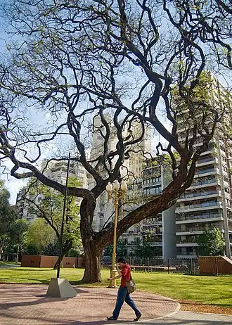 The square honors the author of the Argentine national anthem: Vicente López y Planes is flanked by high and very flowery spring trees of the broads and jacarandaes species, bearing within it a great ombú following urban design and landscape requirements Carlos Thays who despite being born in France he became a naturalized Argentine and preferred to the streets, squares and locals parks had flora of the country rather than imported.