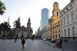The Plaza de Armas is the main square of Santiago, the capital of Chile. Plaza de Armas metro station is located under the square. Surrounding the square are some historic buildings, including the Metropolitan Cathedral of Santiago, Central Post Office Building, Palacio de la Real Audiencia de Santiago, and the building that serves as the seat of local government for Santiago, which was formerly occupied by the Cabildo of the city before being remodeled.[1] There are also other architecturally significant buildings that face the square, including the Capilla del Sagrario, the Palacio arzobispal, the Edificio Comercial Edwards, and the Portal Fernández Concha. The Casa Colorada, the Cuartel General del Cuerpo de Bomberos de Santiago and the Museo Chileno de Arte Precolombino are located a short walk from the square.