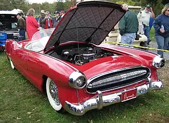 The Plymouth Belmont was a 1954 concept sports car built by Plymouth. It (and the 1954 DeSoto Adventurer concept car) were the first plastic-bodied cars by the Chrysler Corporation. The Belmont seated two and used a V8 engine, that produced up to 150 hp (112 kW).[1] It was originally painted in a light blue metallic, it was painted red later. It was 191.5" long.[2] Had it ever become a production model, its main competitors would have been the Chevrolet Corvette and the Ford Thunderbird.