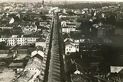In the 18th and 19th century the private town of Białystok became the main center of the region, thanks to the patronage of the Branicki family and the development of the textile industry. Due to the city's palace, parks and edifices, Białystok was dubbed the "Versailles of Podlachia".[18][20] At that time, Polish kings traveling through Podlachia mainly resided in Białystok, i.e. Augustus II the Strong in 1726 and 1729 and Augustus III of Poland in 1744, 1752 and 1755.[20] The School of Civil and Military Engineering, Poland's first military technical college, and Komedialnia, one of the oldest theaters in Poland, were founded in Białystok in 1745 and 1748, respectively.[21][22] Białystok was a regional brewing center with 33 breweries as of 1771, with the Podlachian Beer now listed as a protected traditional beverage by the Ministry of Agriculture and Rural Development of Poland.[23]