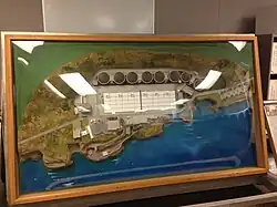 A diorama of the grounds of the Point Loma Wastewater Treatment Plant