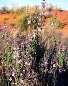 Poliomintha incana is a species of flowering plant in the mint family which is known as frosted mint. It is native to dry and desert areas of the southwestern United States and northern Mexico. It is a strongly aromatic shrub with dark green foliage covered in small white hairs. Scattered about the foliage are fuzzy, tubular flowers in shades of light purple and blue with tiny purple spots. Frosted mint is eaten fresh or dried or used as a flavoring by Native American groups, particularly the Tewa and Hopi.[3]