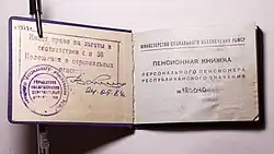 - Personal pension of republican significance (assigned by the Council of Ministers of the union republics);