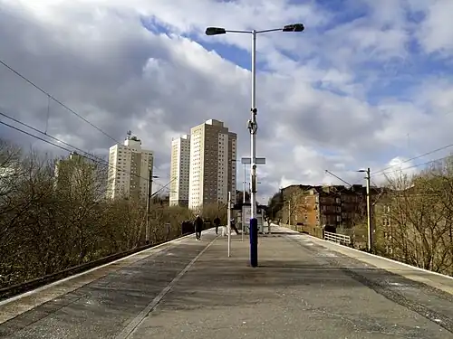 The Caledonian Railway extended the original Cathcart District Railway route back in a loop configuration towards Glasgow Central in 1894, opening the station here along with it on 2 April that year. The station had a goods yard on the north side of the line to the east of station (on the other side of Kilmarnock Road. This was served by a signal box on the south side of the line, opposite the yard. The signal box was closed on 16 October 1961 as part of the electrification scheme.[3]