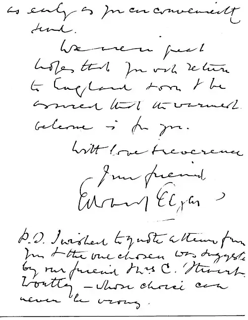 On 29 August 1915, Elgar wrote to Paderewski, asking for permission for the quotation from his Fantasie Polonaise to be published: