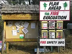 Ponderosa Park is served by the Central Yavapai Fire District (CYFD). Station 56 is located just outside the community and houses Engine 56, a 1982 Ford Van Pelt carrying 750 gallons and Water Tender 56, a 1980 GMC carrying 1250 gallons. This is a reserve station and is not staffed.[3] A firefighter/EMT lives on the property and when not working a shift at a staffed station, may be able to respond to calls within the community. If no one is available, CYFD has an Automatic Aid agreement City of Prescott Fire Department ensuring that the closest fire truck will respond to an emergency regardless of geographical jurisdiction.[4] The closest staffed station is Prescott City station 71, which is approximately 4.5 miles (7.2 km) away, much closer than any staffed CYFD station.[5]