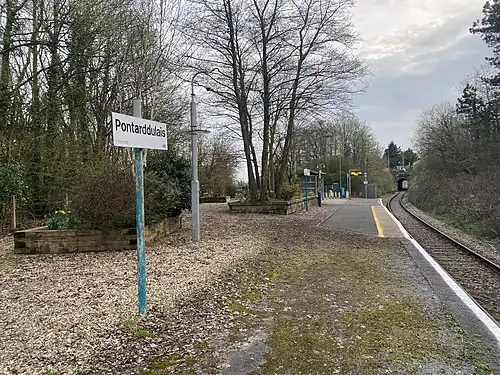 Pontarddulais is a request stop, whereby passengers have to give a hand signal to the approaching train driver to board or notify the guard when they board that they wish to alight from the train there.