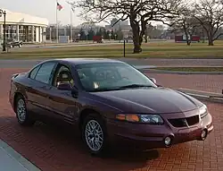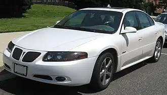 The 2000 Bonneville was restyled, using GM's G platform,[32] with the widest overall track in its competitive class at 62.6 in (1,590 mm) up front and 62.1 in (1,580 mm) in the rear. GM's StabiliTrak stability control system was introduced on the top-of-the-line supercharged SSEi model, later replaced by the GXP.