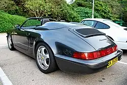 There were two distinct incarnations of the air-cooled 911 Speedster. The first was the 1989 model year Speedster. Shown at the 1988 Frankfurt Motor Show beside the upcoming Carrera 4, the 1989 Speedster actually shared more in common with the 930 turbo than with the upcoming 964 generation 911s, causing it to be looked upon, in retrospect, as a much inferior "driver's car" to the later 1994 Speedster. More than three quarters (641) of the 800 built had the "Turbo look" wide-body option.[15]