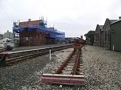 Beginning in 2016 the station and its surroundings became part of South West Regeneration Scheme for the village; this has involved the repaving of the adjacent Station Road, removal of the perimeter walling (itself only installed in 1974 when the road was widened), and the removal of a canopy from the northwest gable of the building, this not being original. A replacement canopy in a similar style to that on the platform side of the building was installed and the former bus office (later Quilter's Haltsewing shop) demolished to create a larger paving area, the new canopy continuing round to the roadside of the building. An original feature, the miasma tower, long since removed, was reinstated atop the roof and track realigned onto a curve at the headshunt. A second phase was completed in early 2018 and has seen a sloped area leading to the adjacent railway museum created, effectively making a large new feature wall a central feature when viewed from the road. Foundations were also laid with the possibility of a short platform being added in the future beside the museum and locomotive; to date there are no plans to install this feature.