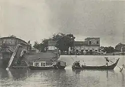 Rally Brothers & Co. was the first company to begin the jute business in the port of Narayanganj. Numerous British companies set up trading posts in the area and used middlemen, called beparis, to source raw jute from the hinterland. A chamber of commerce was set up in 1904. In 1907–08, 20 companies were engaged in the jute trade of Narayanganj, of which 18 were European.[2] Hindu merchants opened several cotton mills in the 1920s, including the Dhakeshwari Cotton Mill, the Chittaranjan Cotton Mill and the Laxmi Narayan Cotton Mill.[3] In 1950, the Adamjee Jute Mills, the world's largest jute mill, was established near the port. The government of Pakistan developed the modern port in June 1955.[3] In the 1960s, Queen Elizabeth II, Crown Prince Akihito and King Bhumibol were among the foreign dignitaries who visited the Narayanganj port and Adamjee Jute Mills.[4][5] Kamal Hossain served as a lawyer for the English-owned and Narayanganj-based Rally Brothers company.[6]