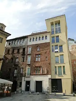 Over the centuries, however, the Palatine Gate was also known by some other names, such as Porta Comitale (Count's Gate, allegedly referring to a count's residence),[2] Porta Doranea or Porta Doranica (since it led to the Dora river) and later as Porta Palazzo (a clear synonym of Porta Palatina).[3][note 3]