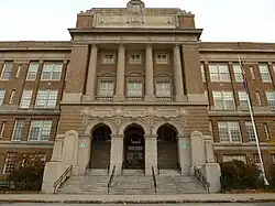 The main school was constructed between 1915 and 1918, according to the plaque by the front entrance. On February 15, 1919 the new Portland High School along Cumberland Avenue, opened. It was designed by Miller & Mayo. The new school had a lecture hall and mechanical arts classrooms. It also had two kitchen classrooms, three sewing rooms and two classrooms for typing.[6] The school was added to the National Register of Historic Places on November 23, 1984.[2]