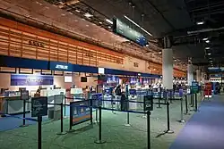 In August 2005, the concourse connector was opened.[36] This is a long hallway on the secure side of the airport that connects the A, B and C concourses to the D and E concourses on the other side of the airport. If there is a long line at the checkpoint at one end of the airport, passengers may use the other checkpoint and walk through the connector to their desired concourse.[37] The connector closed permanently on January 5, 2021, to make room for terminal expansion.[38]