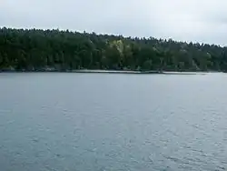Portland Island is an island of the Southern Gulf Islands of the South Coast of British Columbia, Canada. It is located in the Salish Sea west of Moresby Island and off the south tip of Saltspring Island, adjacent to the main BC Ferries route just offshore from the terminal at Swartz Bay at the tip of the Saanich Peninsula. It was named after HMS Portland, the flagship of Rear-Admiral Fairfax Moresby, Commander in Chief of the Pacific Station 1850–1853.[1]: 214
