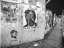 Post No Bills is a documentary film on satirical political poster artist Robbie Conal directed by Clay Walker. The movie's title comes from lettering found on many construction walls and other city surfaces, indicating that advertisements or handbills are not to be placed on the surface.