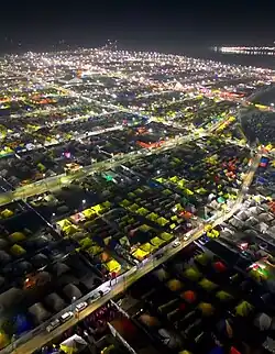 The Prayag Kumbh Mela, also known as Allahabad Kumbh Mela, is a mela, or religious gathering, associated with Hinduism and held in the city of Prayagraj, India, at the Triveni Sangam, the confluence of the Ganges, the Yamuna, and the mythical Sarasvati river.[1] The festival is marked by a ritual dip in the waters, but it is also a celebration of community commerce with numerous fairs, education, religious discourses by saints, mass feedings of monks or the poor, and entertainment spectacle.[2][3] Approximately, 660 million people attended the 2025 Prayag Maha Kumbh Mela, 50 and 30 million people attended the Prayagraj Ardh Kumbh Mela in 2019 and Maha Kumbh Mela in 2013 respectively to bathe in the holy river Ganges, making them the largest peaceful gathering events in the world.[4][5]