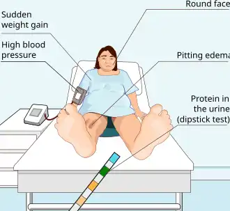 SymptomsHigh blood pressure, protein in the urine[1]