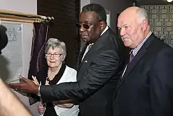Clive Lloyd (centre) re-opens the clubhouse flanked by President Mrs Anne Orrell and Chairman Mr Brian Lorenzini. May 2011