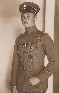 Prince Joachim Viktor Wilhelm Leopold Friedrich Sigismund of Prussia (17 December 1891 – 6 July 1927) was a German World War I fighter pilot and member of the House of Hohenzollern as the son of Prince Friedrich Leopold of Prussia and Princess Louise Sophie of Schleswig-Holstein-Sonderburg-Augustenburg.