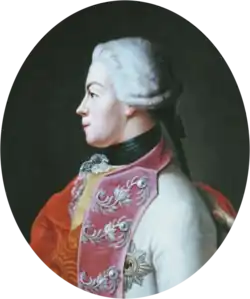 1. ^ Genealogie ascendante jusqu'au quatrieme degre inclusivement de tous les Rois et Princes de maisons souveraines de l'Europe actuellement vivans [Genealogy up to the fourth degree inclusive of all the Kings and Princes of sovereign houses of Europe currently living] (in French). Bourdeaux: Frederic Guillaume Birnstiel. 1768. p. 17.