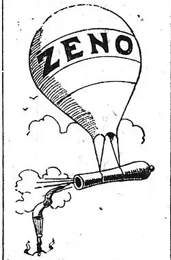 Professor Zeno (August 1, 1875 – September 26, 1901) was an early Aeronaut at the turn of the 20th century known for his performance of suspending from a trapeze below a parachute attached to a Hot Air Balloon, which he would then and cut loose from to float back to Earth while hanging from the trapeze beneath the parachute. He also performed the balloon cannon act in which he, again equipped with a parachute, was shot from a cannon suspended from a hot air balloon only to float safely back to Earth.