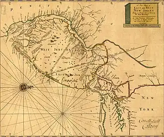 11. ^ The Concession and Agreement was the first of three fundamental documents that governed the Province of New Jersey. See: New Jersey State Constitution#Previous versions. See also: History of the New Jersey State Constitution. For the other two fundamental documents, see #East and West Jerseys.