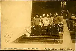 Instead of attending Nanjing's assembly, Song Jiaoren and Chen Qimei gathered the provincial representatives in Shanghai and held an assembly on December 4.[2] On December 25, Sun Yat-sen, accompanied by general Homer Lea, his closest foreign adviser, returned to Shanghai.[5] On December 29, the presidential election was held in Nanjing. According to the first article of the "Provisional Government Organization Outline", the Provisional President was to be elected by representatives from the provinces of China; the candidate who received more than 2/3 of the votes would be elected. Each province was entitled to one vote only. 45 representatives from seventeen provinces participated in this election, and Sun Yat-sen received 16 valid votes out of 17.