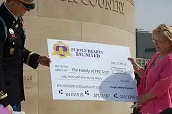 Established in 2012 as 501 (c)(3) nonprofit foundation, Purple Hearts Reunited (PHR) works to return lost or stolen medals to recipients or their family at no cost to them.[1] When possible, PHR conducts a ceremony to formally place the medal back in the hands of the recipient or family.[1] In situations where a recipient or family member cannot be located, PHR works to identify a suitable alternative, such as a military museum.[1]