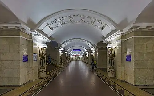 Pushkinskaya (Russian: Пу́шкинская) is a station of the Saint Petersburg Metro. It first opened on 30 April 1956, under the original name of "Vitebskiy vokzal", referring to the connecting Vitebsky railway station.