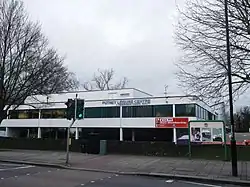 The Leisure Centre building was built in 1968, designed by the architectural practice Powell & Moya,[2] who also in Putney designed Mayfield school (now Ashcroft Technology Academy).[3] Under the building is a sunken car park and garden, the 33m swimming pool is an "L" shape, incorporating a swimming area and 4m deep splash pool diving area,[4] the first such pool of its type.[5]
