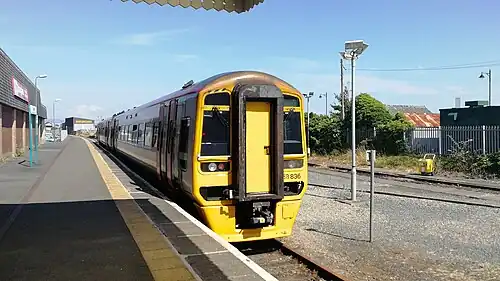 The station is now unstaffed and has no ticket machine, so all tickets must be purchased on the train or prior to travel. The main building still stands - part of it is used as a cafe and coffee shop whilst the remainder provides covered waiting accommodation. Train running information is offered by means of digital display screens, automated announcements, timetable poster boards and a customer help point. Step-free access is provided from the main entrance to the platform.[6]