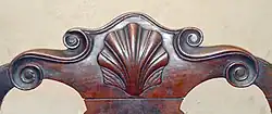 Curved lines, in feet, legs, arms, crest rails, and pediments, along with restrained ornament (often in a shell shape) emphasizing the material, are characteristic of Queen Anne style.[5] In contrast to William and Mary furniture, which was marked by rectilinearity (straight lines) and use of curves for decoration, Queen Anne furniture uses C-scroll, S-scrolls, and ogee (S-curve) shapes in the structure of the furniture itself.[5] In sophisticated urban environments, walnut was a frequent choice for furniture in the Queen Anne style,[5] superseding the previously dominant oak and leading to the era being called "the age of walnut."[6] However, poplar, cherry, and maple were also used in Queen Anne style furniture.[11]