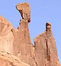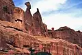 Queen Nefertiti Rock is a 4,741-foot-elevation (1,445-meter) pillar in Grand County, Utah. The feature is located within Arches National Park and like many of the rock formations in the park, Queen Nefertiti Rock is composed of Entrada Sandstone. Topographic relief is significant as the summit rises 400 feet (122 meters) above the Park Avenue Trail in 0.1 mile (0.16 km). Precipitation runoff from Queen Nefertiti Rock drains to the nearby Colorado River via Courthouse Wash. This landform's descriptive toponym has been officially adopted by the United States Board on Geographic Names,[1] and is so named because the feature resembles the head of Queen Nefertiti.[4][6]