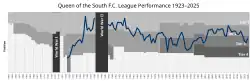 Queen of the South Football Club is a Scottish professional football club formed in 1919 in Dumfries. The club plays in Scottish League One, the third tier of Scottish football. They are traditionally nicknamed the Doonhamers but are more usually referred to as Queens or QOS.[2][3] Their home ground is Palmerston Park.