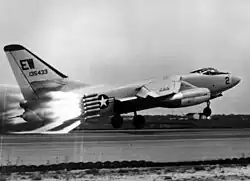 VAH-3 was initially established at Naval Air Station Jacksonville, Florida and was originally equipped with the A3D-1 Skywarrior. It made its only operational cruise from 12 July 1957 to 12 Mar 1958 aboard the USS Franklin D. Roosevelt (CVA-42) in the Mediterranean.[2] In mid-1958, the squadron began accepting the upgraded A3D-2 version of the Skywarrior, relocated to Naval Air Station Sanford, Florida, and was merged with the U.S. Atlantic Fleet's Heavy Attack Training Unit Atlantic (HATULANT). VAH-3 was then designated as a Fleet Replacement Squadron (FRS) for the A3D for the Atlantic Fleet, inheriting a mix of aircraft from HATULANT including R4D-7s, P2V-3Bs, F9F-8Ts and A3D-2Ts[3][4] (redesignated as TC-47K, P-2C, TF-9J and TA-3B in 1962).