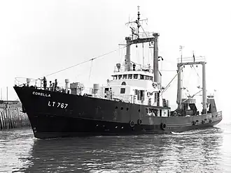 RV Corella (LT767) was a fisheries research vessel that was operated by the Ministry of Agriculture, Fisheries and Food (United Kingdom) - Directorate of Fisheries, now known as the Centre for Environment, Fisheries and Aquaculture Science (Cefas) between 1967 and 1983.[4]