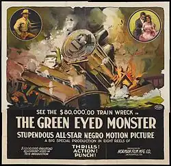 The Green Eyed Monster, an all black romantic adventure by the Norman Film Manufacturing Company with an elaborate and expensive train wreck.