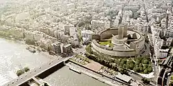 Radio France has its headquarters at the Maison de la Radio et de la Musique, a circular building designed by the architect Henry Bernard (architect) and inaugurated in December 1963 by President Charles de Gaulle, which stands beside the River Seine in the 16th arrondissement of Paris. In addition to housing Radio France's central services and the studios of several of its channels, the building is home to the Musée de Radio France, a museum of radio and television broadcasting and recording techniques. The building caught fire in October 2014.[2]