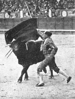 ![]() Rafael Gómez "Gallito" Ortega in a "monumental pass" given to his first bullfight on October 8, 1912 in Madrid | |