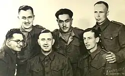 Back, left to right: Ralph Churches, Henare Turangi, and William G. Bunston. Front, left to right: 'Hank' Dale, Eric Lane, and Kenneth 'Kit' Carson.