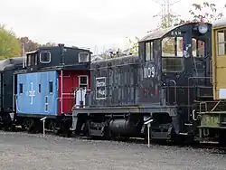 1109 SW1 1939 EMD Display Former Boston and Maine #1109, the locomotive was used in service until being acquired by the M&B and being renumbered to #27. The locomotive was later purchased by the Pioneer Valley Railroad and later the RMNE. The locomotive was eventually moved to the RMNE's Saybrook Yard before being transferred to the Naugatuck Railroad. Currently on static display at Thomaston Station.