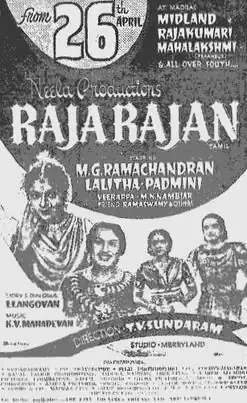 Raja Rajan (transl. King of kings)[2] is a 1957 Indian Tamil-language film starring M. G. Ramachandran, Padmini and Lalitha. The film was released on 26 April 1957,[3][4] and did not do well at the box-office, running for just above 50 days in theatres.